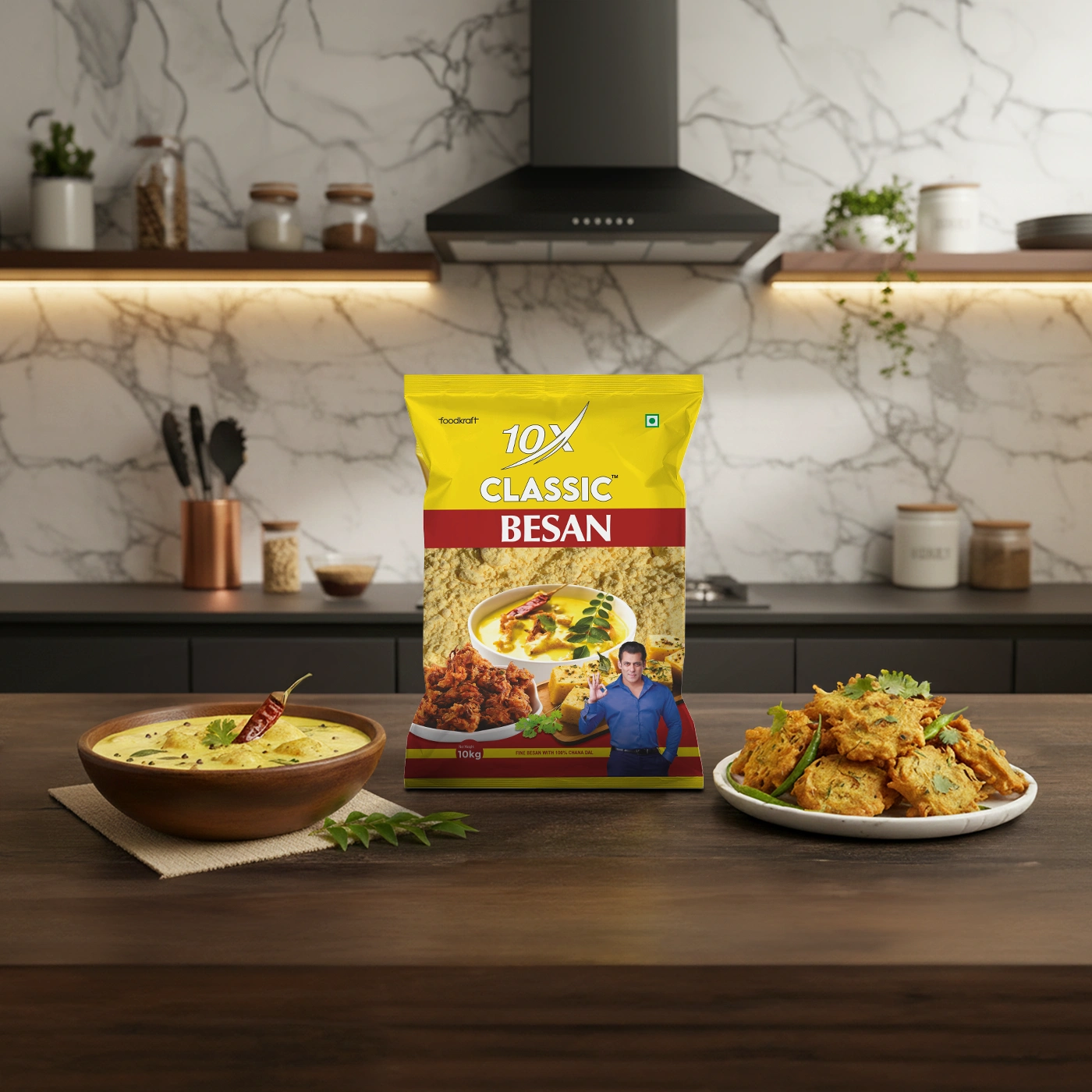 10X Classic Besan 10kg is carefully produced from selected chana dal and finely milled to deliver smooth, lump-free besan with authentic taste and aroma. Designed to perform consistently in large-batch cooking, this besan blends easily and enhances flavour across a wide range of Indian dishes. Naturally rich in protein and dietary fiber, besan is widely used in Indian kitchens for both nutrition and taste. From crispy pakoras and kadhi to dhokla, chilla, and traditional sweets, 10X Classic Besan delivers dependable results every time. Hygienically processed and packed in a sturdy 10kg bag, it is ideal for high-usage and commercial environments.
