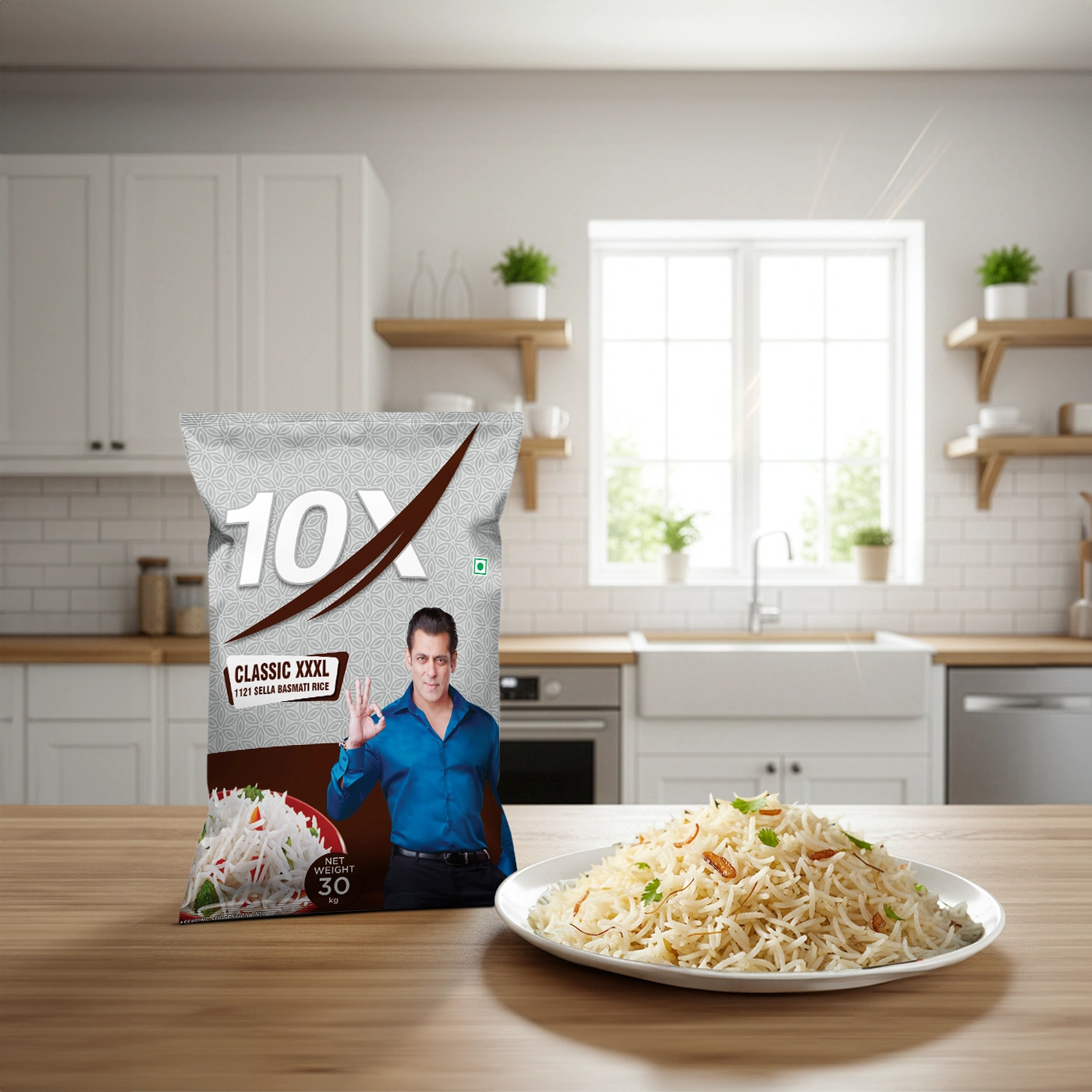 10X Classic XXXL 1121 Golden Sella Basmati Rice is specially processed from selected 1121 basmati paddy using the golden sella (parboiled) method. This process strengthens the grains, improves cooking stability, and gives the rice its characteristic golden colour preferred in traditional biryani preparation.