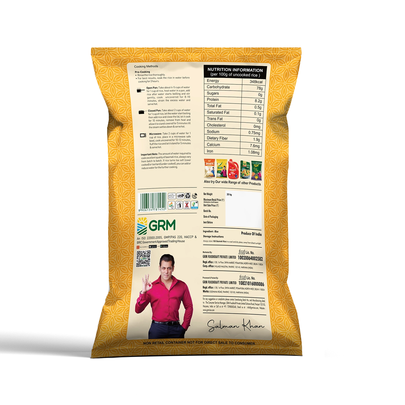 After cooking, the grains elongate well, remain separate, and maintain a fluffy, non-sticky texture even during long dum cooking. With its balanced aroma, reliable grain structure, and cost-effective performance, Dubar is an excellent choice for restaurants, caterers, cloud kitchens, and community kitchens. Packed in a sturdy 30kg bag, it is designed for consistent results in bulk usage."