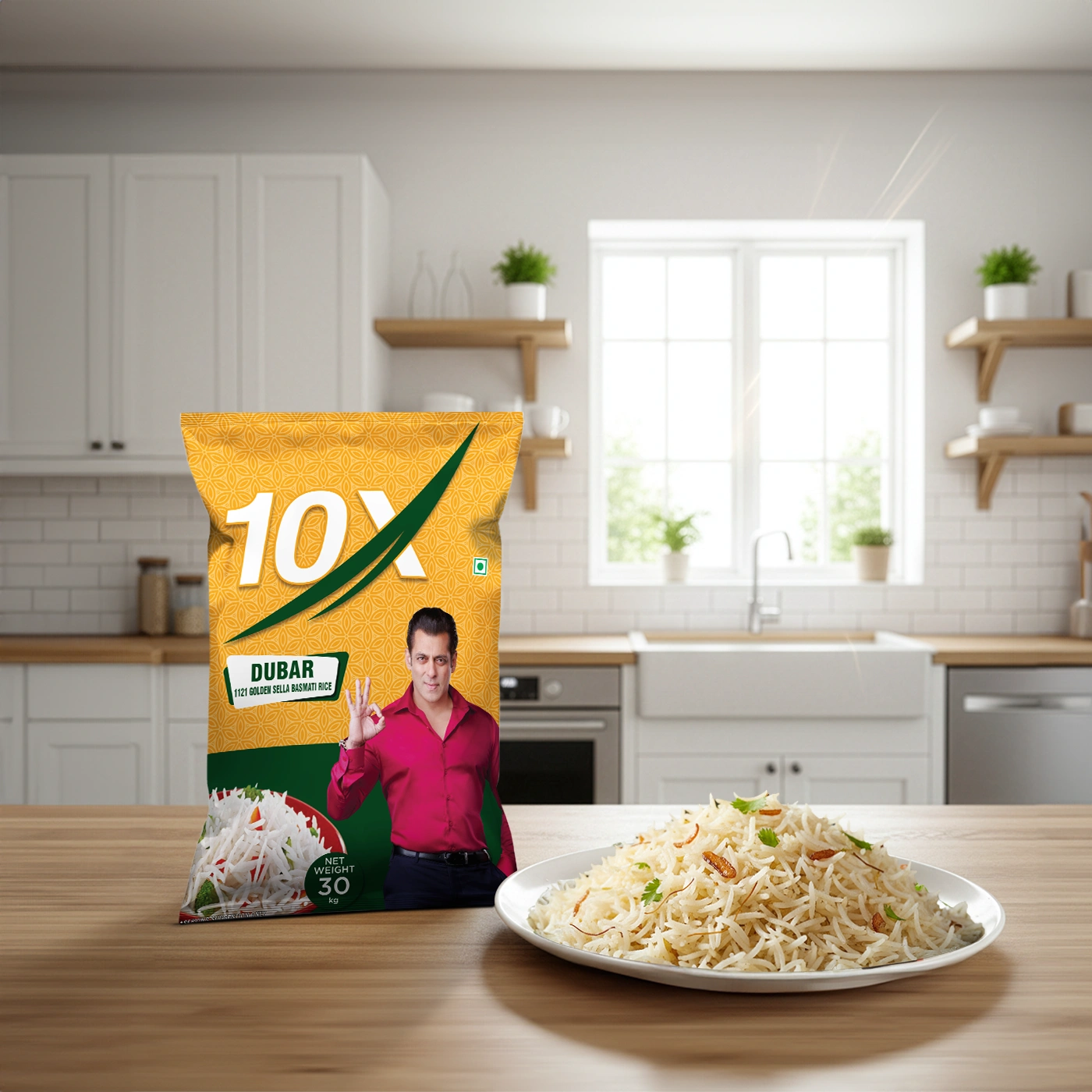 "10X Dubar 1121 Golden Sella Basmati Rice is made from carefully selected 1121 basmati paddy and processed using the golden sella (parboiled) method. This traditional process strengthens the grains, enhances cooking stability, and gives the rice its characteristic golden colour preferred for biryani and festive rice dishes.
